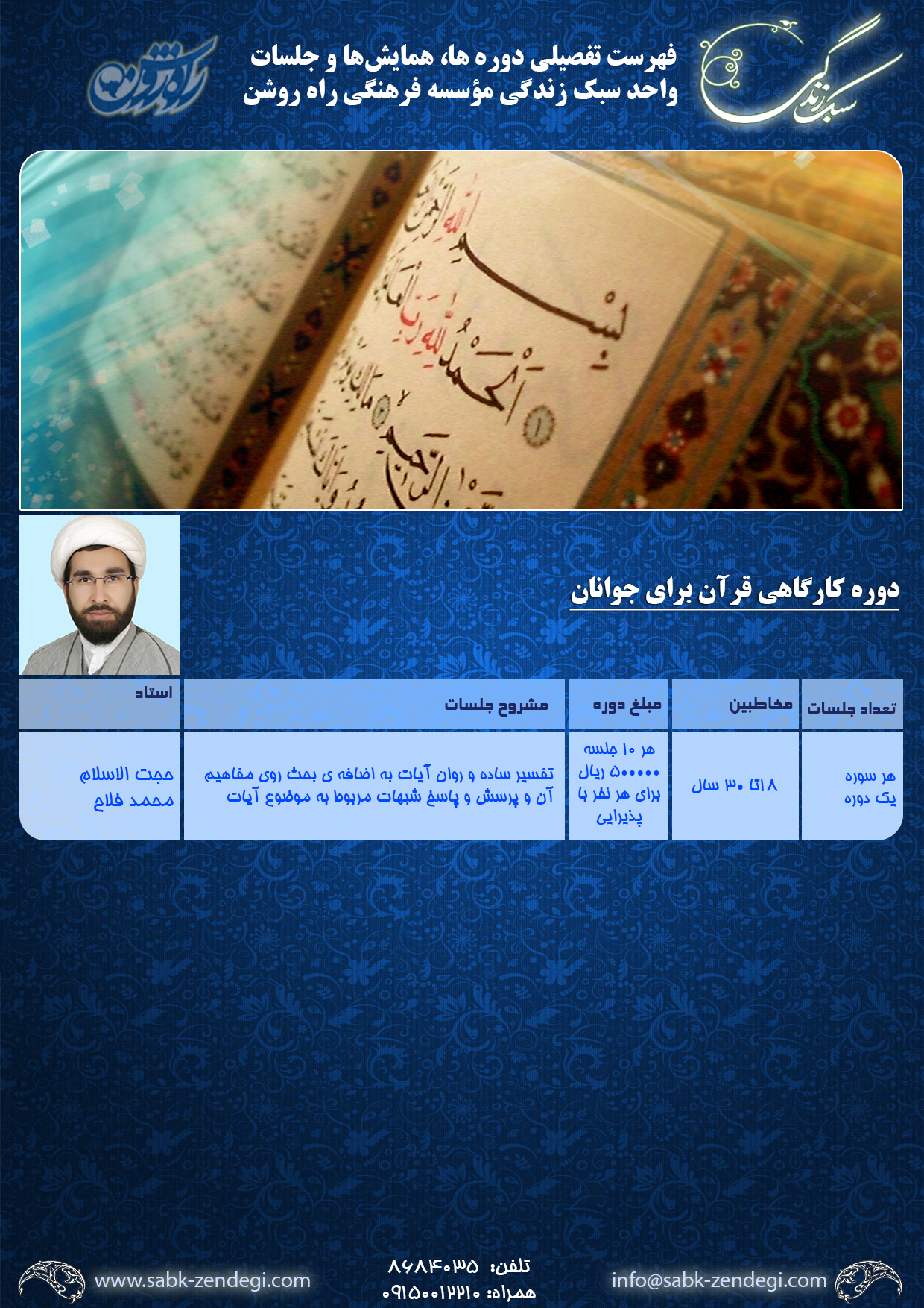 فرمانده پایگاه بسیج موعود که کارشناس،محقق ومدرس مباحث جنگ نرم وحوزه یهودشناسی است دربخش پدافندعامل به توضیح پیرامون کاربری سلاح کلاشینکف به عنوان سلاحی ساده درعین حال برترمی پردازد. استاد داوود مهاجر دربخش پدافند غیرعامل راهکارهای جلوگیری ازجنگ و به حداقل رساندن خسارتهای جنگ احتمالی را بیان می کند.این دوره درشکلهای پنج و ده جلسه ای قابل برگزاری است.